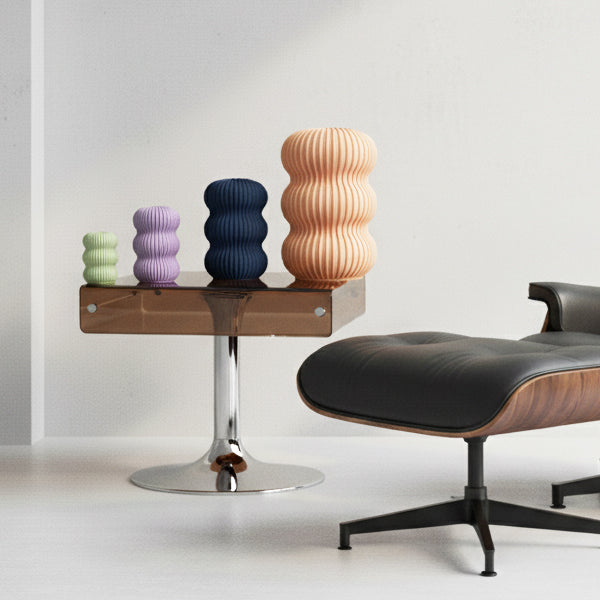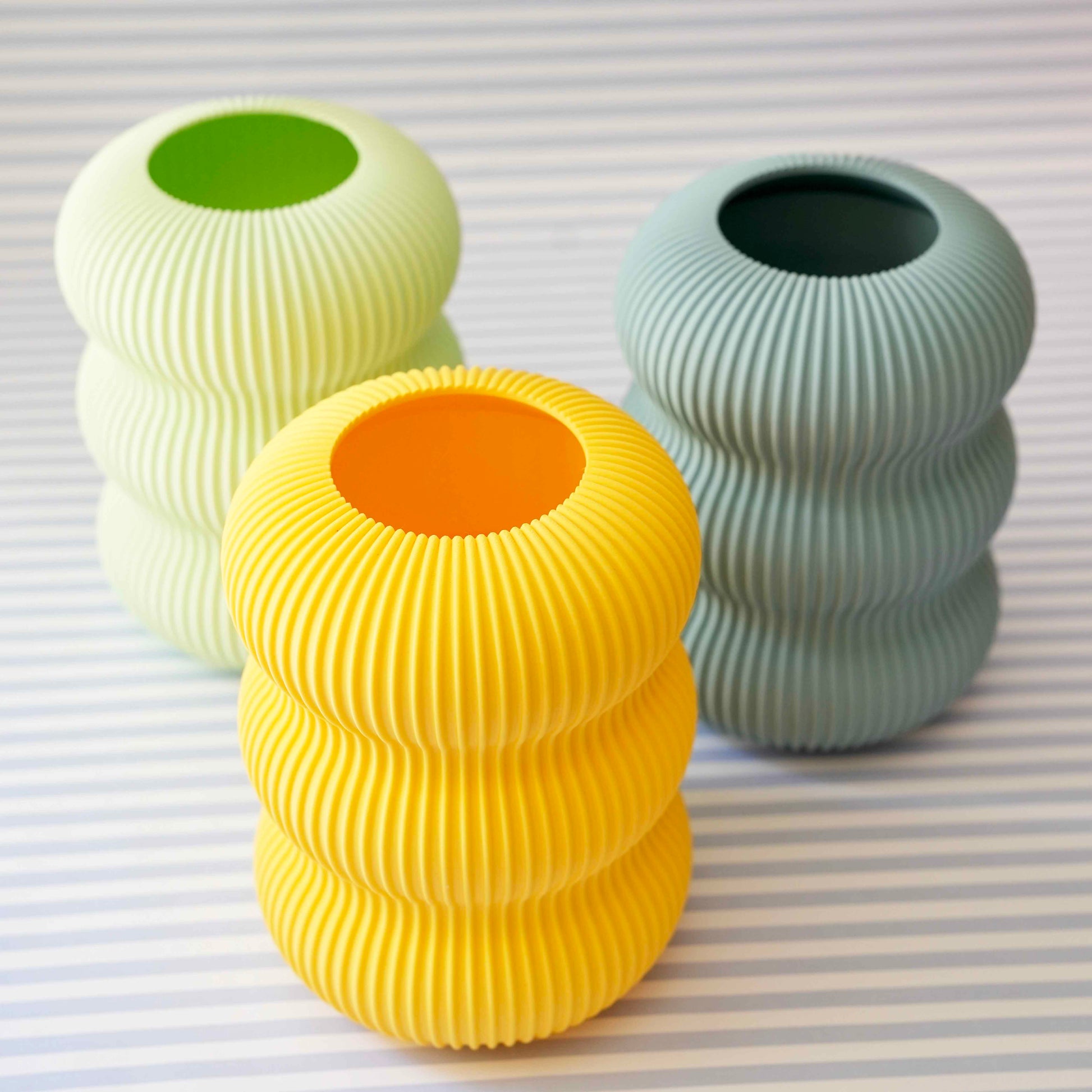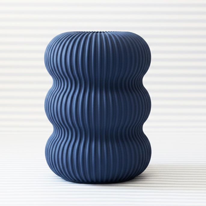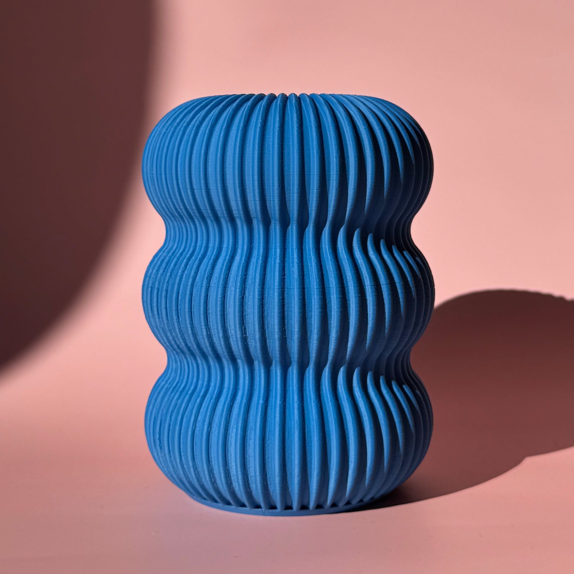 The BERTA vase captivates with its organic shape and distinctive grooved texture, giving it a sculptural presence. Inspired by Scandinavian design, it combines clean lines with playful lightness. Sustainably made from PLA and available in ten colors, BERTA is a timeless statement piece for modern living.