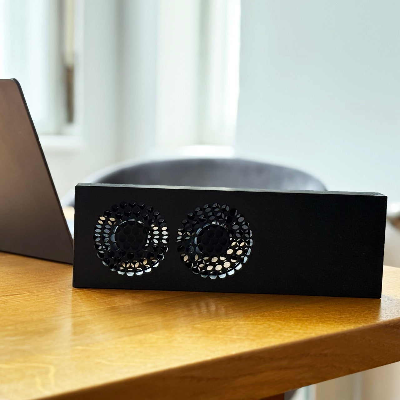 Die Idee für SKADI entstand aus einem ganz einfachen Bedürfnis: Frische Luft ins Zimmer holen, auch wenn es draußen windstill ist. Statt auf große, klobige Ventilatoren zu setzen, haben wir etwas Kleines, Dezentes entwickelt – einen Ventilator, der einfach an jedes Fenster montiert werden kann und die Luft gezielt von draußen nach drinnen bringt.